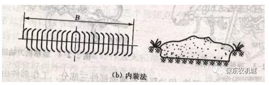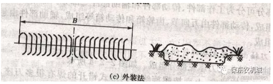 刀片都朝刀軸中間彎,該裝法耕后中間有壟,起填溝作用。